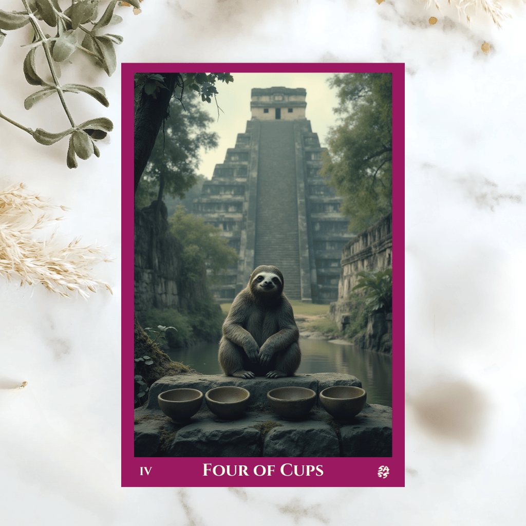 Four of Cups: Divine Dissatisfaction & Hidden Offerings This week, we draw the Four of Cups—a cosmic invitation to look